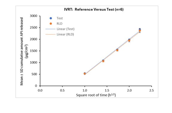 - Bioequivalence studies conducted in compliance with FDA Draft Guidance for IVRT, USP <1724> and/or SUPAC-SS